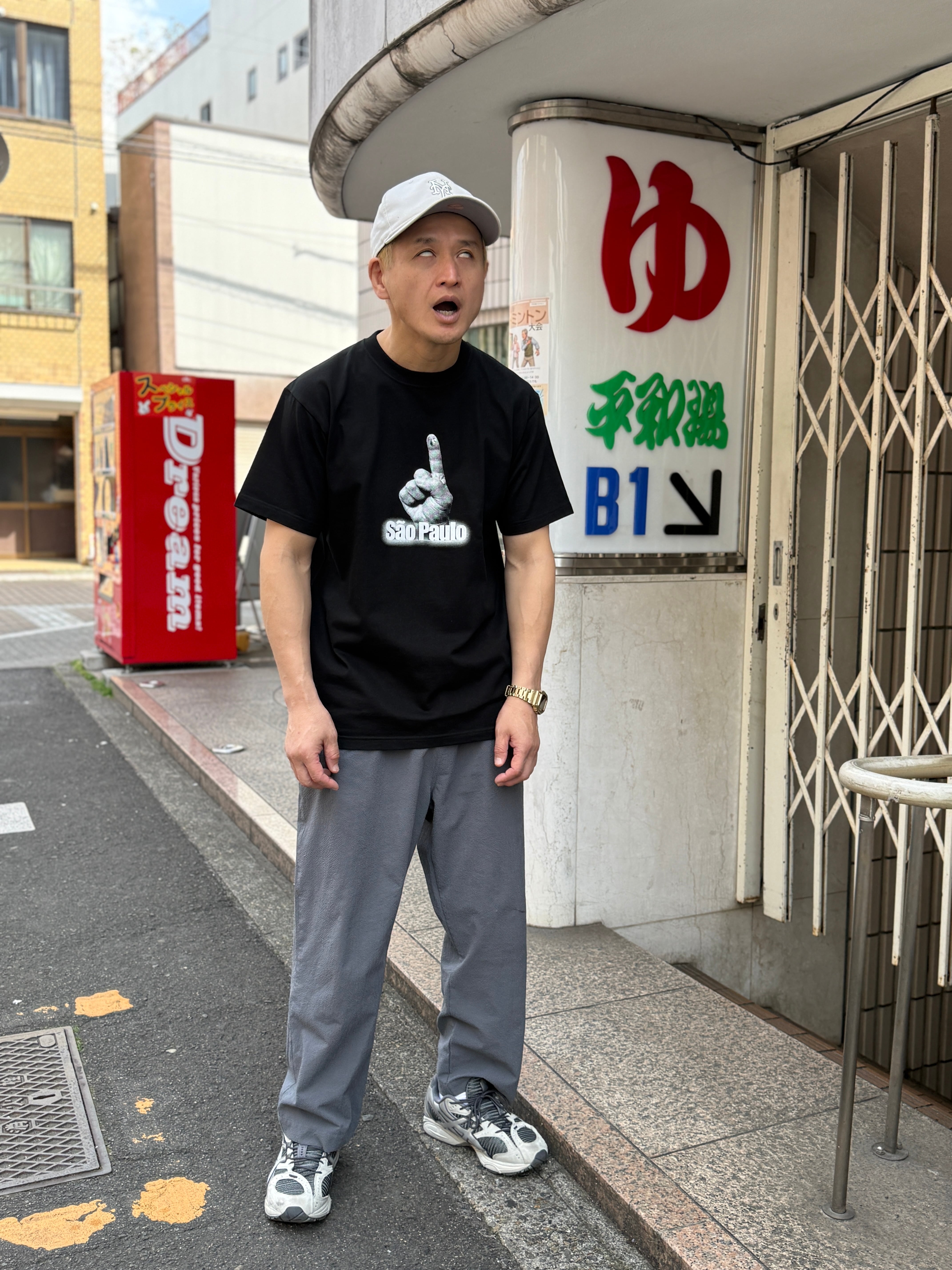 「どうも漫画の描き過ぎでムキムキになった“漫画の神様”毛塚治虫です。今回はブラジル・サンパウロで開催される柔術の大舞台に向けて、“サンパウロTシャツ”のデザインをさせていただきました!胸には力強く『São Paulo』の文字。そして福島善成選手がナンバー1を掲げる右手、その指先にはなんと福島の顔が…!まるで“勝利を掴み取る瞬間”を漫画的に切り取ったような、POPでちょっぴりシュール、でもしっかり熱いデザインになっております。